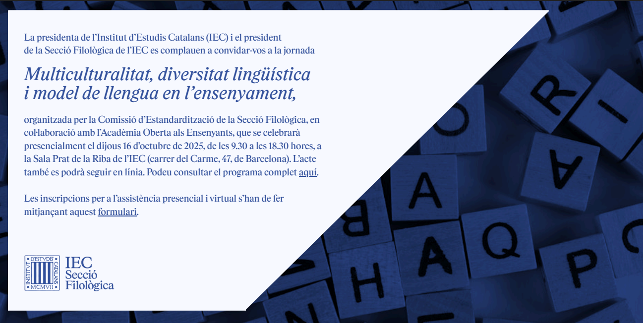 La Secció Filològica de l’Institut d’Estudis Catalans (IEC) es complau a convidar-vos a